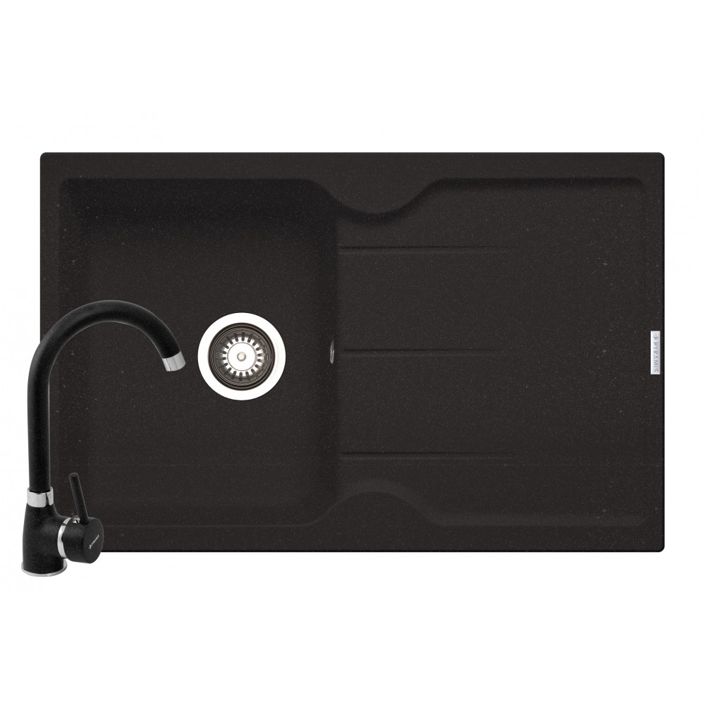 Set Pyramis chiuveta granit Portos & baterie Bello Negru