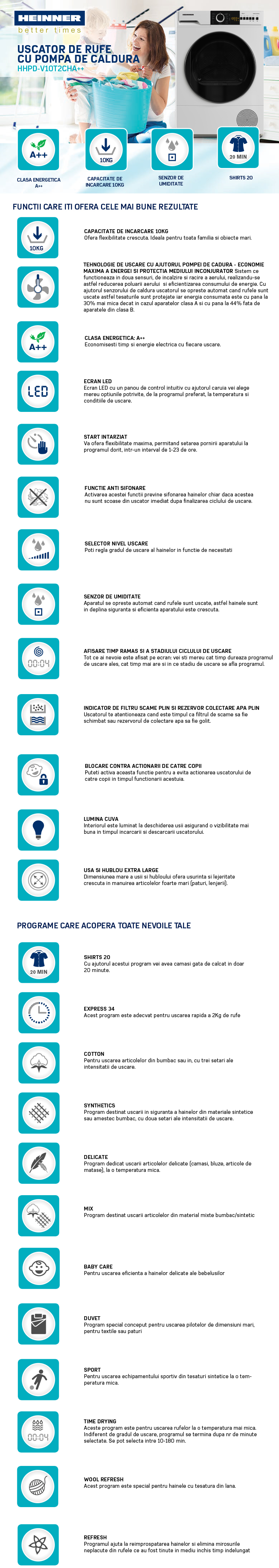 Uscator de rufe cu pompa de caldura Heinner HHPD-V10T2CHA++