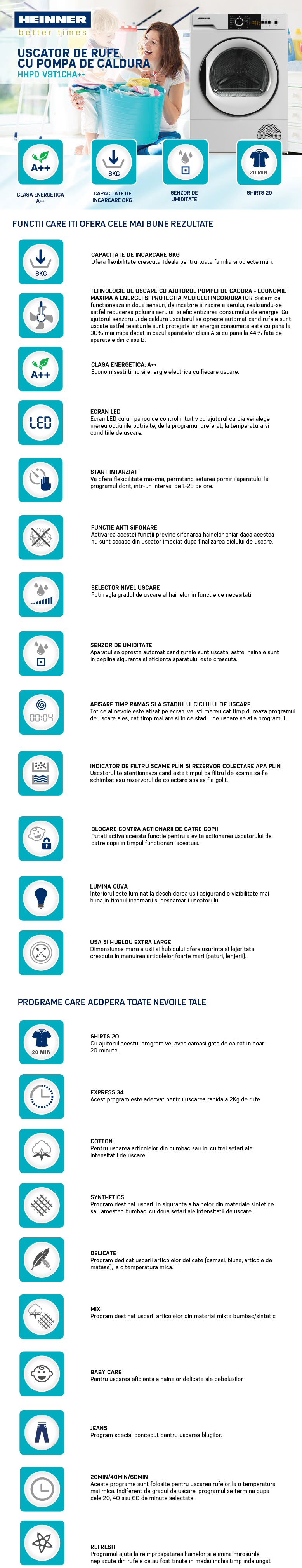 Uscator de rufe cu pompa de caldura Heinner HHPD-V8T1CHA++