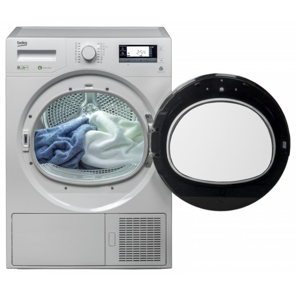 Tehnologia inovativa a uscatoarelor de rufe BEKO cu pompa de caldura este o combinatie intre un uscator in condensatie si un aparat de aer conditionat. Condensatorul din sistem incalzeste aerul ce usuca rufele, iar vaporizatorul indeplineste functia de condensare si uscare a aerului umed si fierbinte.Circuitul inchis cu pompa de caldura este cel mai eficient energetic in procesul de uscare a rufelor, comparativ cu modelele conventionale. Prin intermediul acestui sistem, temperatura aerului din interiorul tamburului este considerabil redusa fata de uscatoarele conventionale si cel mai important aspect, consuma cantitati minime de energie.